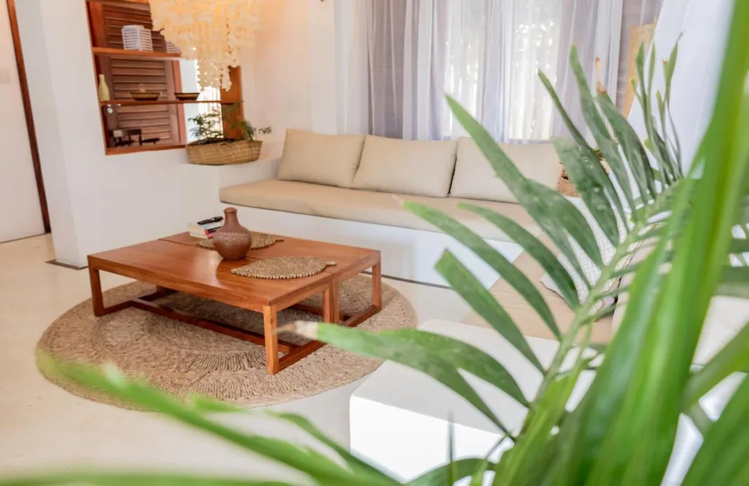 Casa Do Crush Jericoacoara-3 Suites Com Piscina includes a balcony and a sitting area and welcomes guests with an iron with ironing board and an air conditioner, as well as a sofa set and a writing table. This accommodation comes with a bathroom with a separate toilet and a shower. Dryers and towels are included to enhance your comfort.